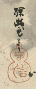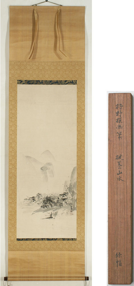 | Kanô Tan’yû (1602-1674) Ksanô Haboku, broken ink landscapeSigned: Tan’yû jihitsu Seals: Morinobu Technique: sumi on paper 109.9 x 42.7 Mounting: bronze brocade and brown 197 x 54.6 Condition: good Kanô Tan'yû was the foremost artist of his day. He was the eldest son of Kanô Takanobu (1571-1618) and the grandson of the extraordinarily talented Kanô Eitoku (1543-1590) who had worked for Nobunaga and Hideyoshi as goyô eshi, master painter employed by the court. He studied under Kanô Kôi (c.1569-1636). In 1614 moved from Kyoto to Edo and in 1617 only sixteen years old was appointed goyô eshi, painter in the service of the Shogun. By the time he was twenty years old he was awarded with a mansion which he turned into a workshop where he employed some twenty painters and a large number of assistants. In 1636 he became a priest and on the shogun's orders he changed his name from Morinobu to Tan'yû. In 1638 he received the rank of hôgen and in 1662 that of hôin. The Imperial household awarded Tan’yû with a membership in the aristocratic Fujiwara family. He established the Kanô style at the Edokoro, office of painting responsible for official painting commissions. Reference: Tokyo Metropolitan 2002 Nihon no bijutsu kaiga kinshû Vol.15 Fischer ‘15 p. 23-43 Roberts p.175; Araki p. 1809; Jordan & Weston pp. 16-17; Rosenfield B.40 Price: SOLD ![]() | |